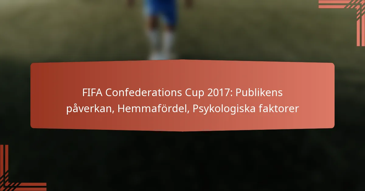 FIFA Confederations Cup 2017 visar den djupa påverkan som publikens inflytande har på matchresultat, särskilt till förmån för hemmalaget genom ökad moral och prestation. Hemmabana, som kommer från bekanta arenor och stödjande fans, förstärker ytterligare ett lags konkurrenskraft, medan psykologiska faktorer som press och motivation spelar avgörande roller i att forma spelarnas prestationer under denna turnering med hög insats.