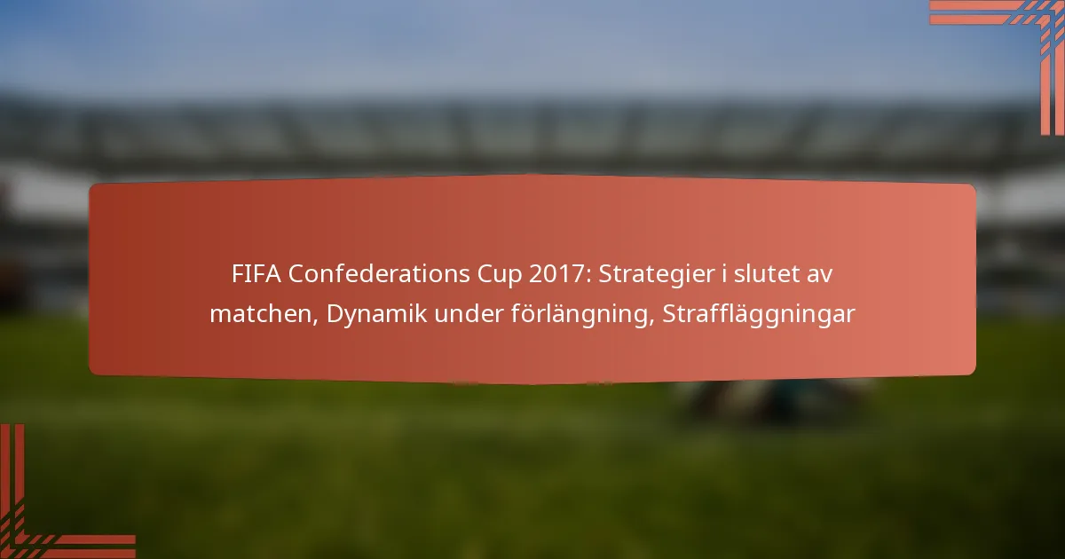 FIFA Confederations Cup 2017 visade på vikten av strategier i slutet av matcherna, där lagen fokuserade på att behålla kontrollen och göra taktiska justeringar för att säkra sina positioner. När matcherna gick in i förlängning blev fysisk kondition och mental motståndskraft avgörande för spelarna att prestera på topp. Vid oavgjort resultat fungerade straffsparkar som en avgörande metod för att bestämma vinnaren, vilket belyser pressen och skickligheten involverad i höginsatsscenarier.
