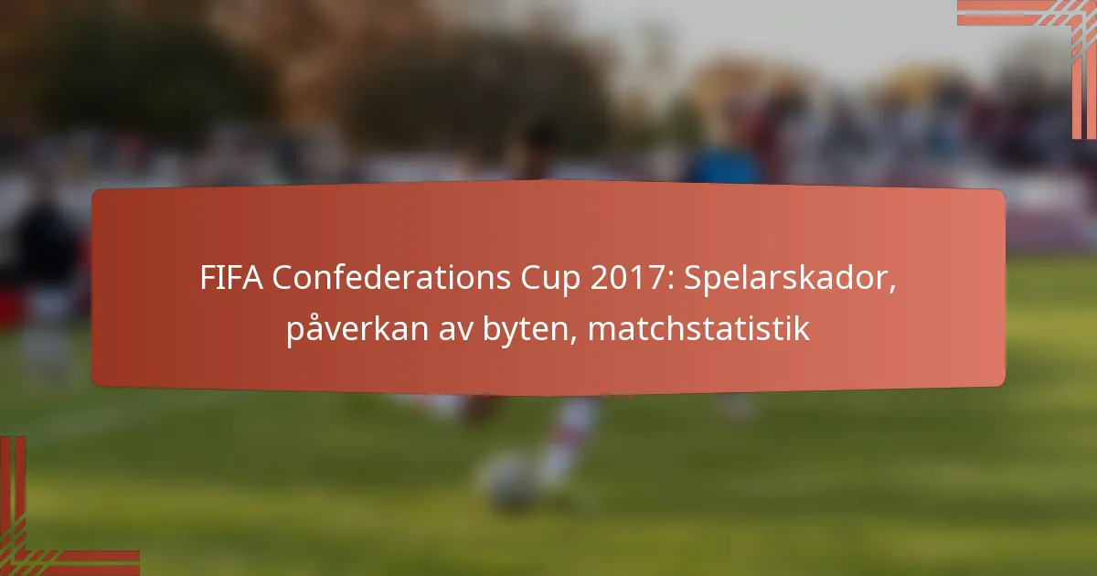 FIFA Confederations Cup 2017 präglades av betydande spelarskador som påverkade lagdynamik och strategier, där muskelsträckningar och ligamentproblem satte viktiga idrottare på sidlinjen. Dessutom blev strategiska byten avgörande för att forma matchresultat, eftersom tränare anpassade sig till skador och motståndartaktik. Turneringen innehöll också en mängd matchstatistik, inklusive gjorda mål och bollinnehav, vilket underströk prestationerna hos både lag och spelare.
